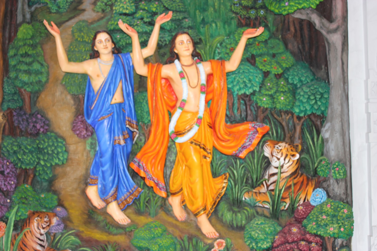 The peacock feather signifies the exuberance of nature. Sri Krishna wears a peacock feather that reminds us of his play with the gopas and gopis of Sri Vrindavana. The male peacock especially has long been a symbol of romantic love, and the rasalila episode of Sri Krishna's life teaches us how this kind of love may be directed to God.